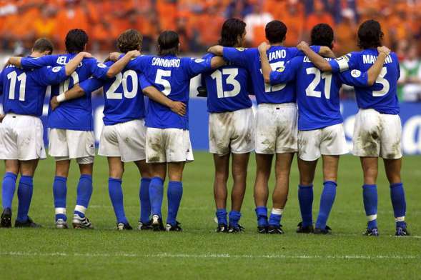 …Ho tirato entrambe le braccia, aspettandomi una reazione di gioia. I primi Tifosi stavano già lasciando il cinema in Maximilianstrasse. Ancora due minuti... il tempo non voleva andare più veloce. A bordo campo, i sostituti e i funzionari italiani si sono messi in fila, abbracciati come avevano festeggiato per tutta la durata del torneo, in attesa del fischio finale. Dino Nazionale, deriso e criticato all'inizio dalla stampa e dai cosiddetti esperti di calcio. Dopotutto, era salito al semidio d'Italia in quelle quattro settimane ... un minuto in più... se lo meritavano davvero. Lui è stato un degno campione europeo... CAMPIONI D'EUROPA 2000...